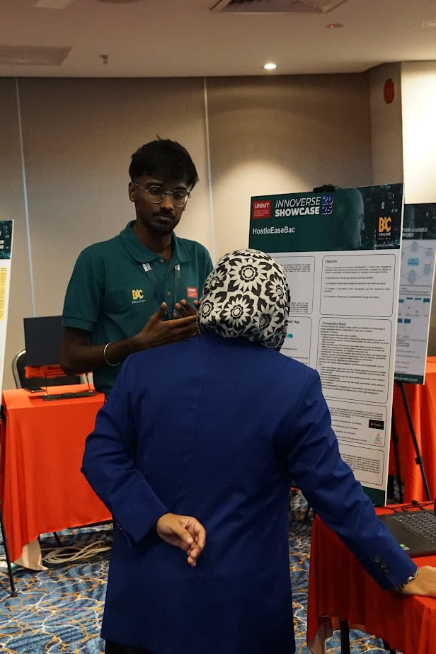On 21 August 2025, the Menara BAC's Horizon Banquet Hall transformed into a buzzing hub of creativity and innovation as University Malaysia of Computer Science and engineering (UNIMY) hosted its Innoverse Showcase 2025. The event brought together more than 30 students from across UNIMY’s diverse programmes, including Diploma, Degree, and Postgraduate studies in fields such as Robotics, Cybersecurity, IT, Computer Science, and Software Engineering. Every student proudly presented their inventive solutions to real-world problems.