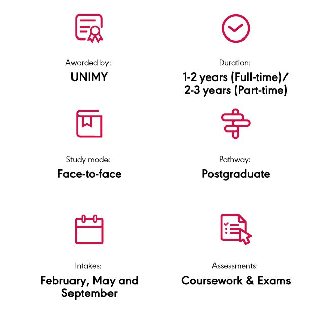 - A Bachelor’s degree (Level 6, MQF) in non-related fields with a minimum CGPA of 2.00 as accepted by the HEP Senate and without relevant working experience, subject to passing pre-requisite courses; or